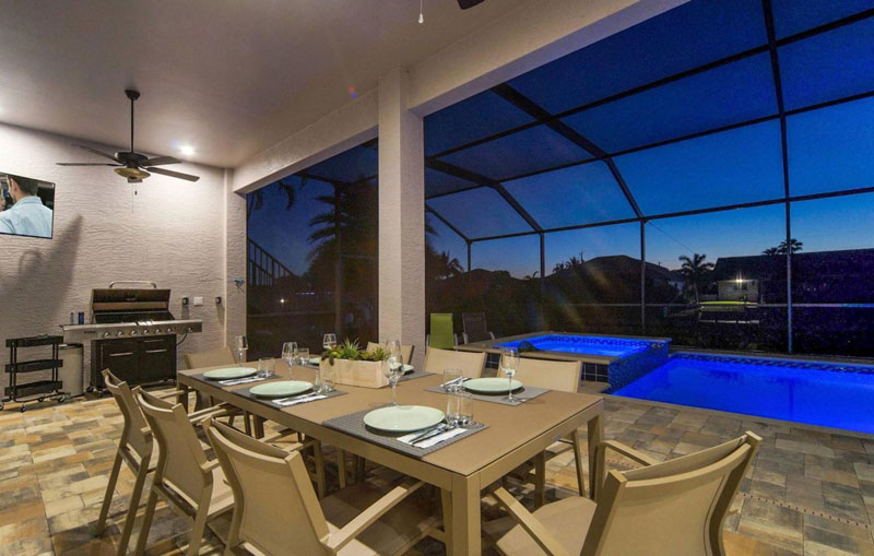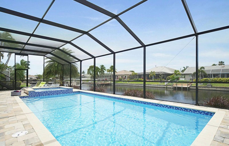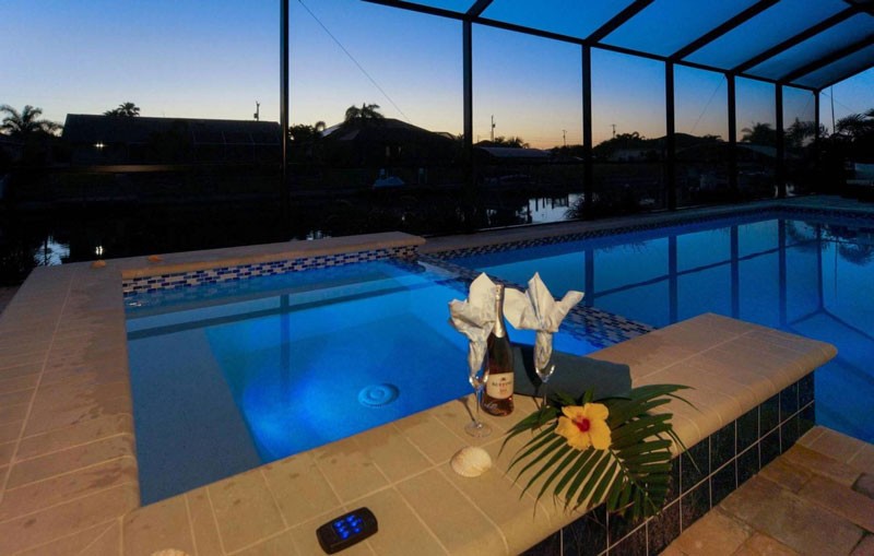 Florida Ferienhäuser Cape Coral. Ferienhaus mit Pool, Spa, großem Schlafzimmer & Bad, Terrasse, BBQ-Grill, Golfanlage in Wasserlage. Sonniger Urlaub in Florida.